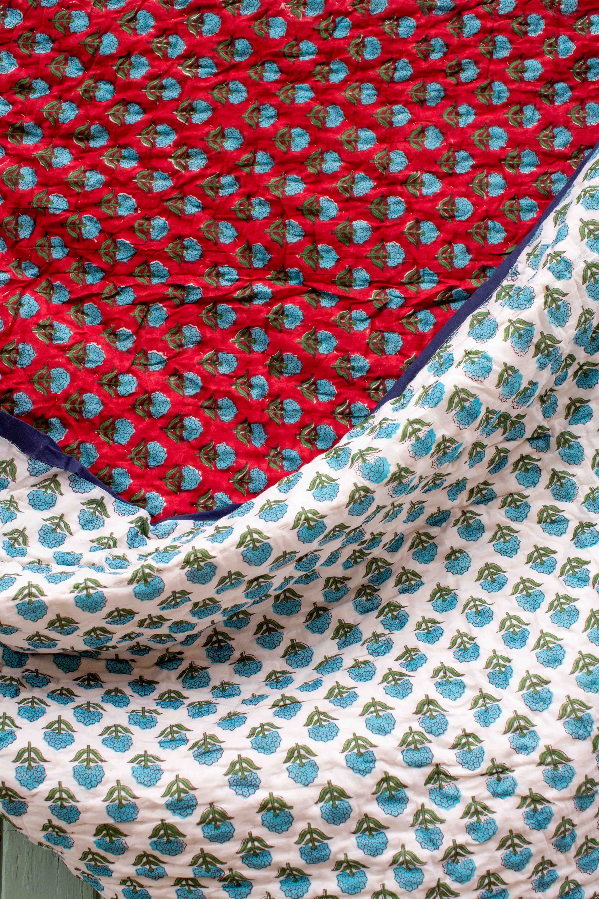 This hand printed Pretty Floral padded quilt is absolutely beautiful